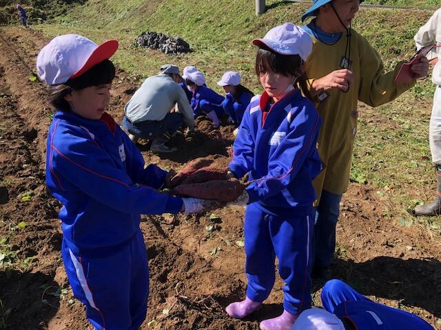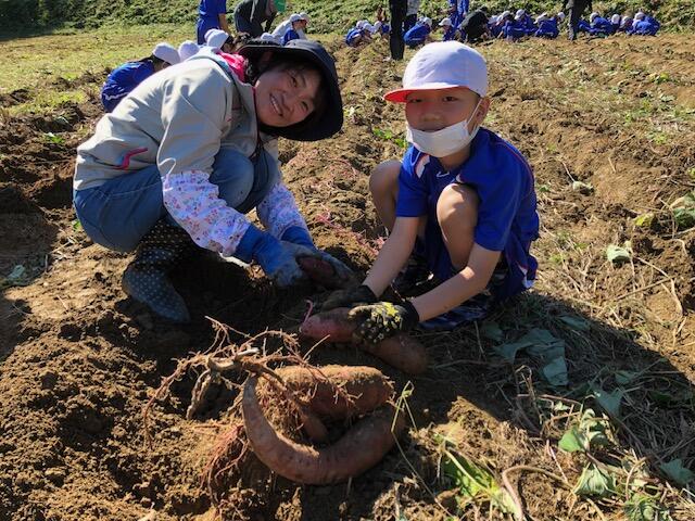 子ども達は、春の苗植え以来の作業でしたが、収穫を待ちに待っていましたので、大きな芋を掘り起こす度に畑のあちこちから歓声が起こりました。