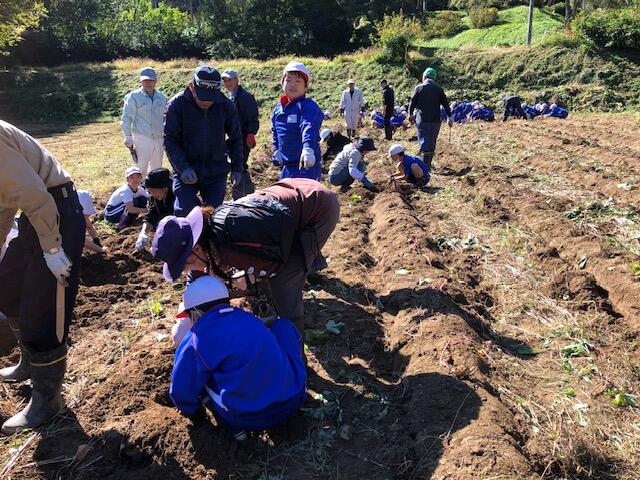当日は、野木沢小の子ども達も合流し、楽しい一日となりました。収穫したサツマイモは、一人5本ずつ家に持ち帰り、残りのサツマイモはそれらを材料に、収穫祭を予定しています。
