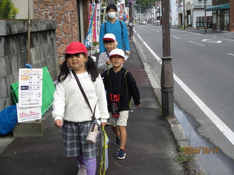 本日、石小の2・3・4年生は、秋晴れに誘われるように、町内への体験学習に出かけました。