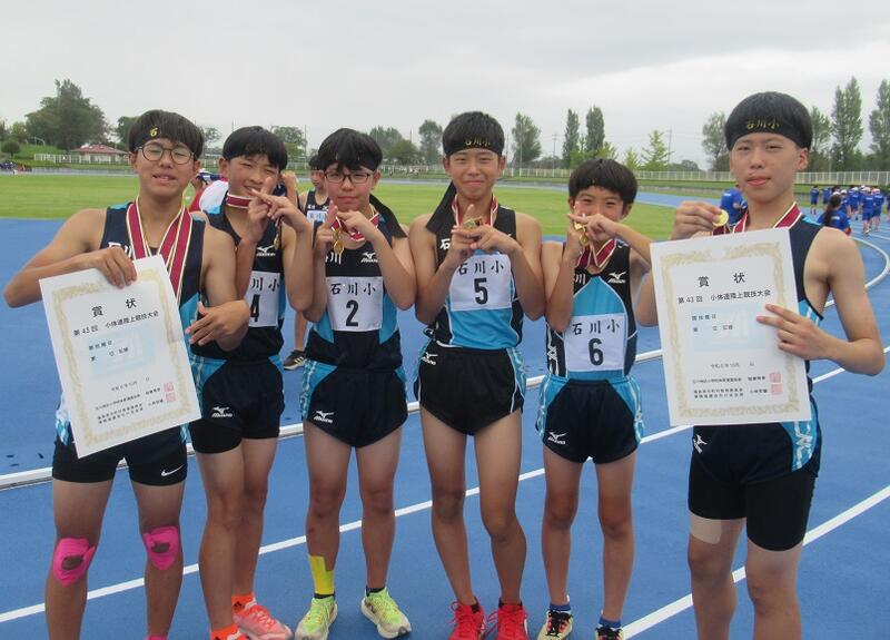 本校からは6年生全員が参加し、練習の成果を存分に発揮しました。中で、だんし100m走、男子4×100mリレーは,大会新記録となり、大会に華を添えました。