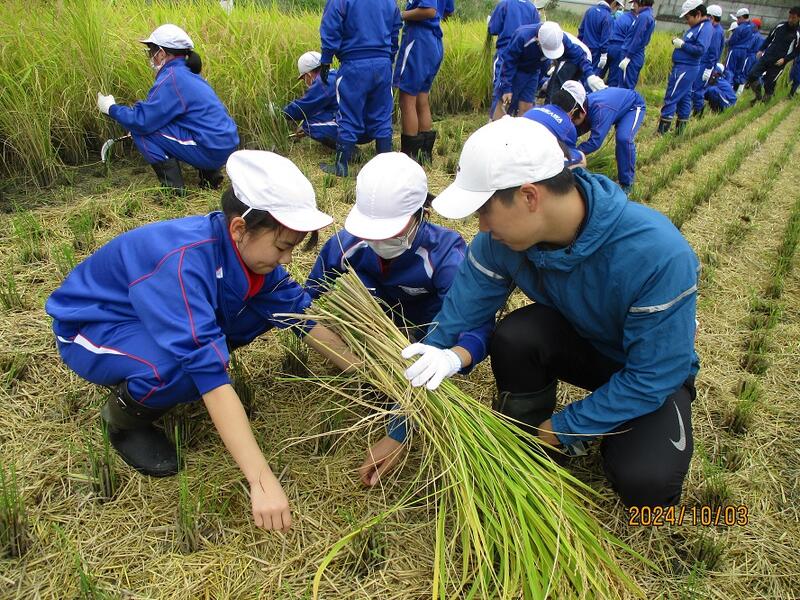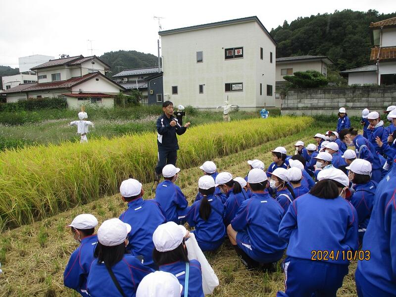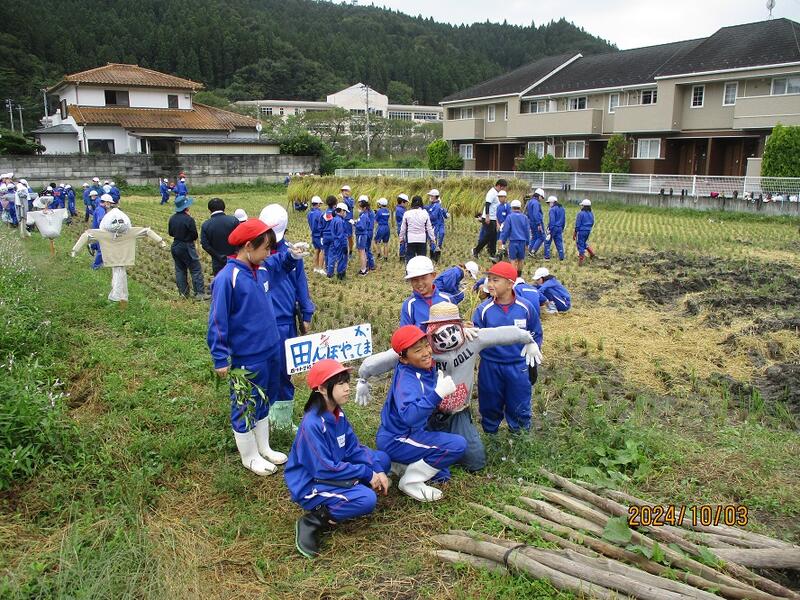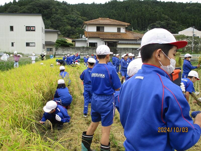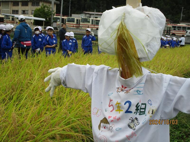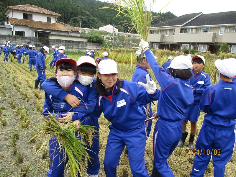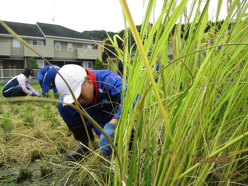 春に田植えをしてからずっと見守ってきた5年生の田んぼ。10月3日は待ちに待った稲刈りです。