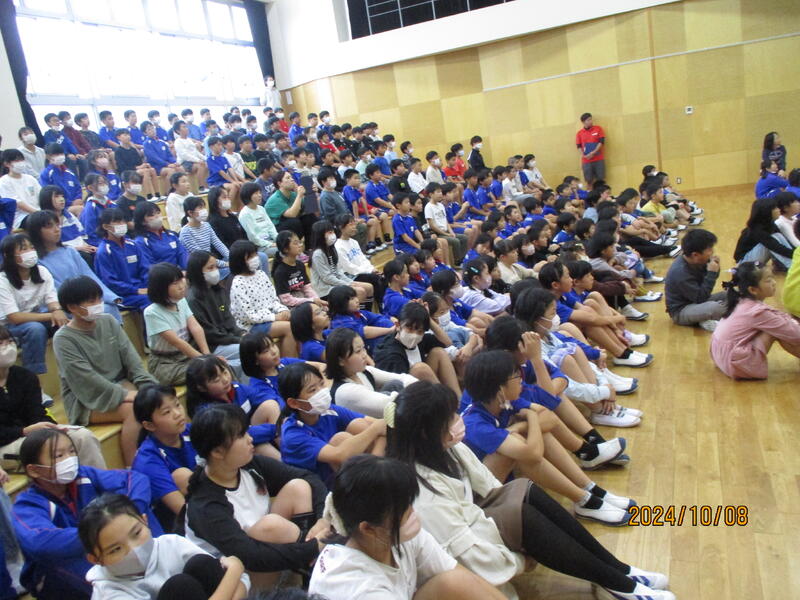 明日、10月10日(木)に 喜多方プラザ文化センターで開催される「第78回福島県下小中学校音楽祭(第二部合奏)」に出場する合奏部を全校生で激励する会が開かれました。