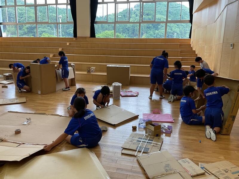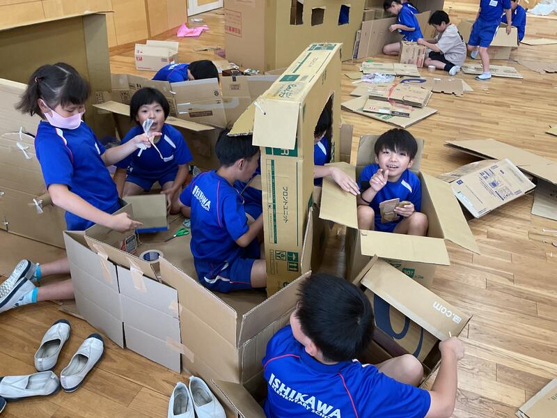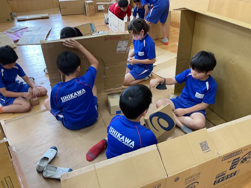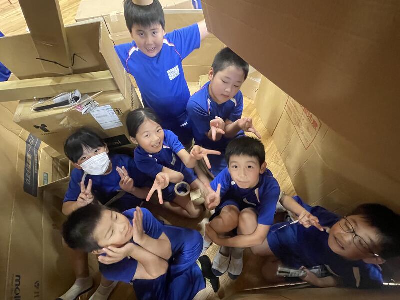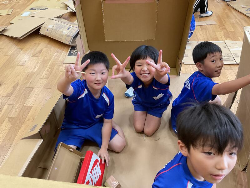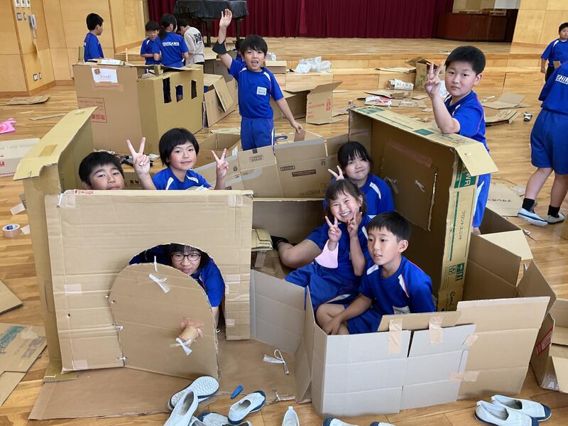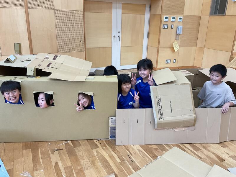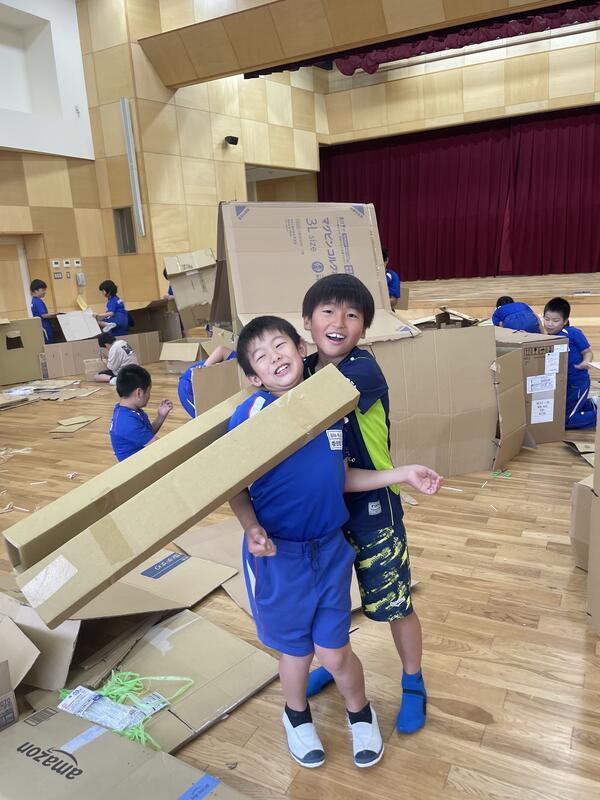 2024年7月9日 21時07分本日の4年生は、クリスタルホールにおいての学年合同の図画工作、「つながれ・広がれダンボール」の授業を行いました。なぜ合同か?何なぜクリスタルホールか?というと。活動の様子を見ていただくと一目瞭然。百聞は一見にしかずです。