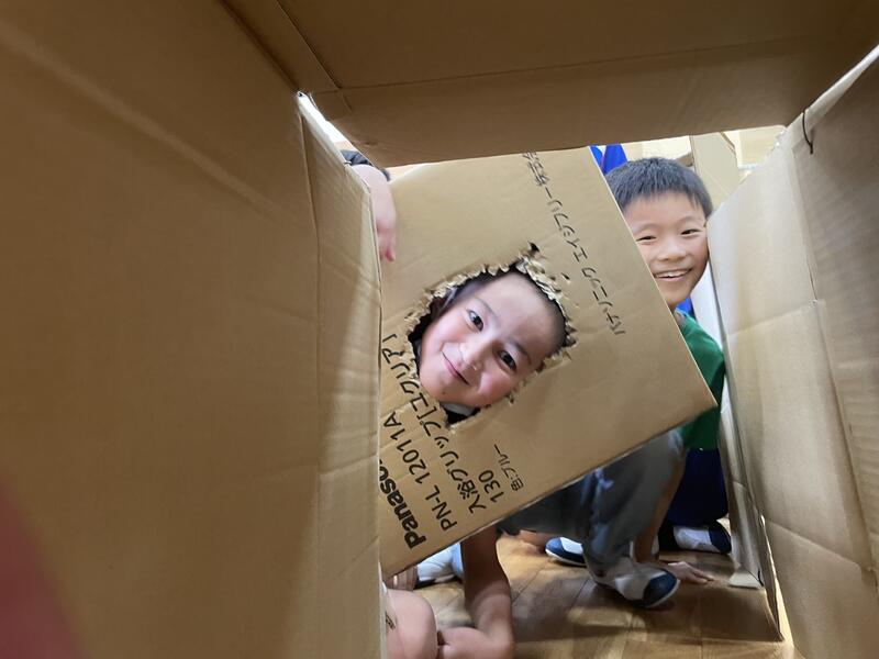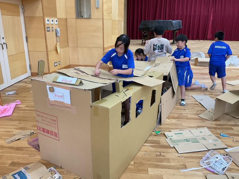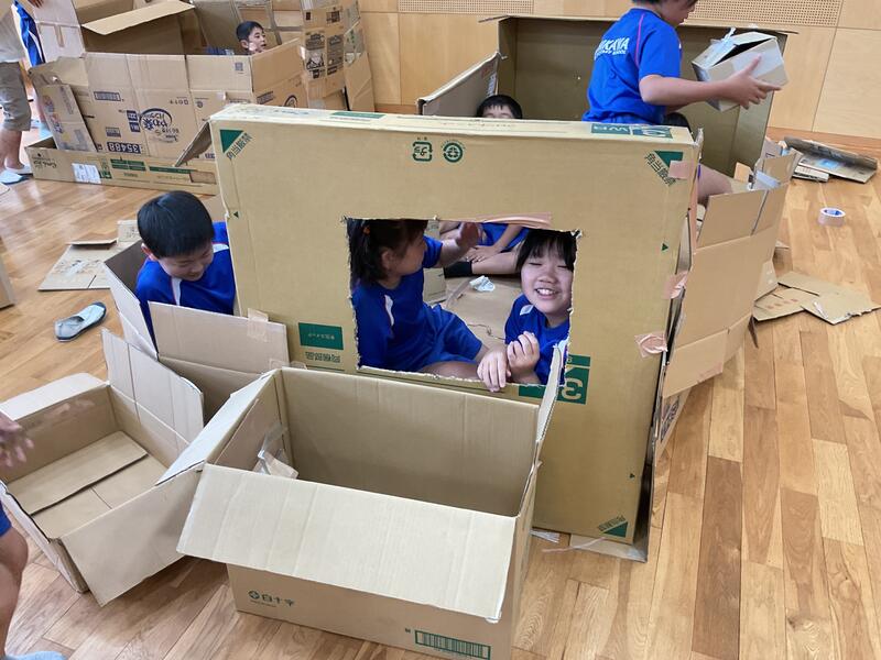 ダンボールは、子ども達がこつこつと家庭から持ち運んだものと、地域の介護事務所の方から大量にいただいたものです。