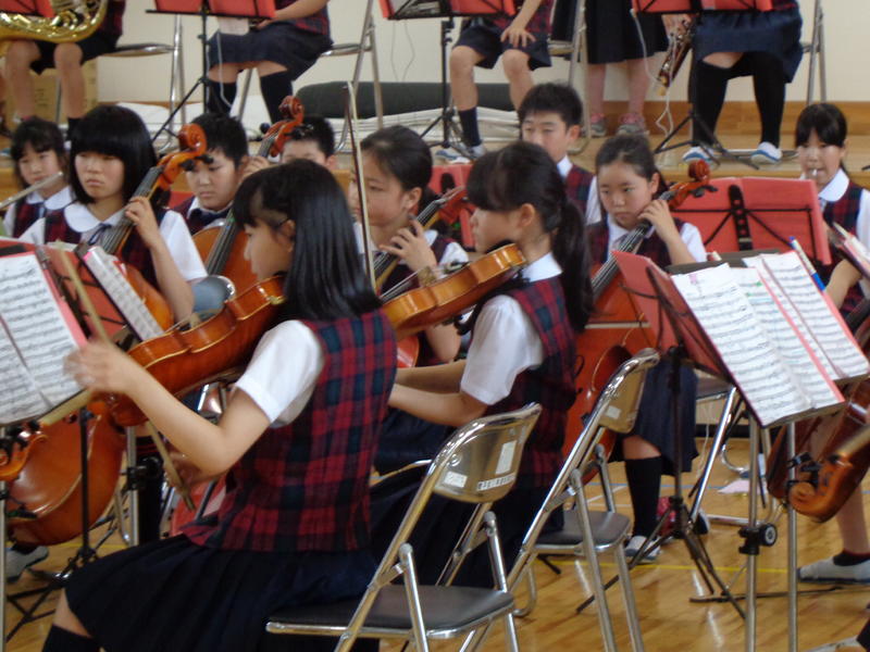 介護施設のお年寄りをお招きして、合奏部による演奏会を行いました。ベートーベンの交響曲やトトロの「さんぽ」など、数曲疲労しました。演奏後、お年寄りの人たちと一緒にスイカを食べました。お年寄りの方もとても喜んでいました。