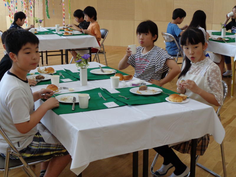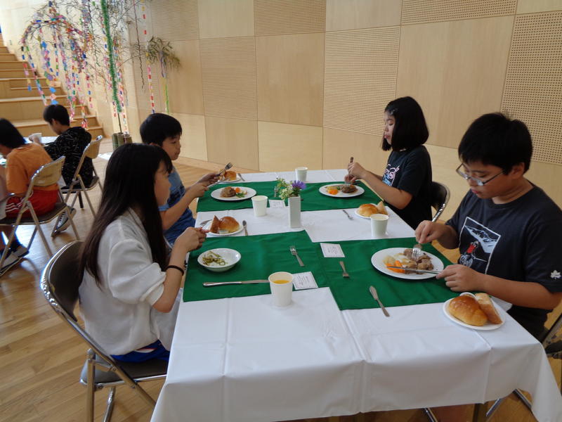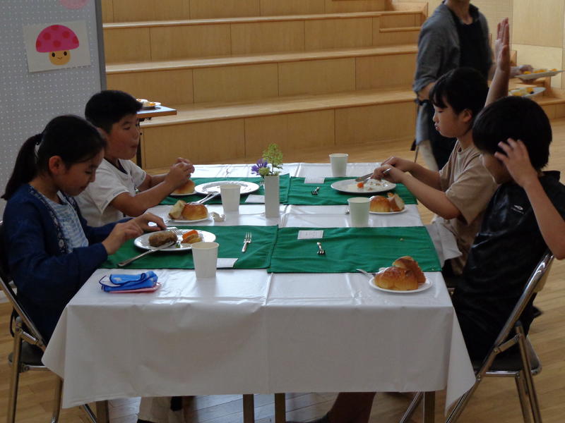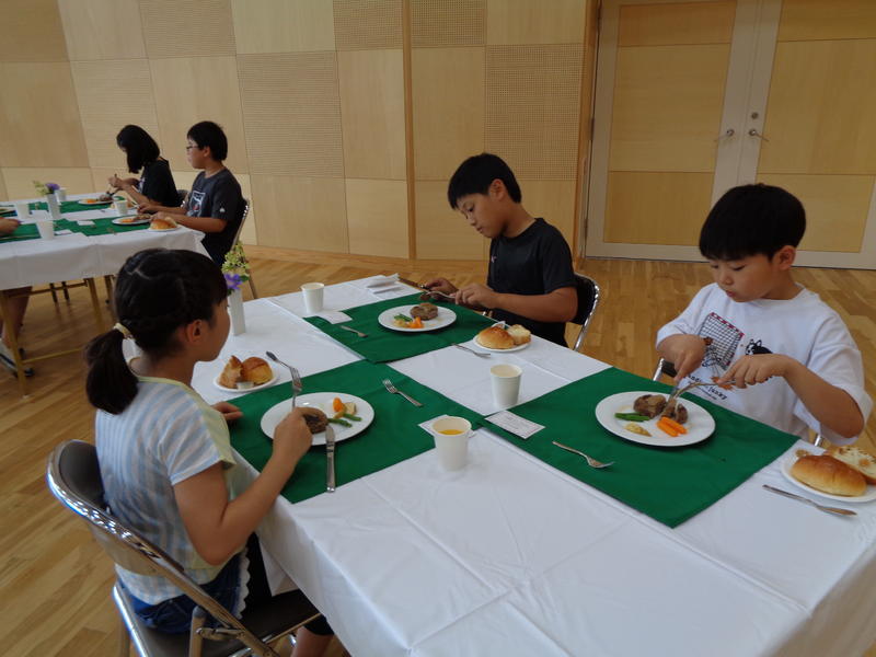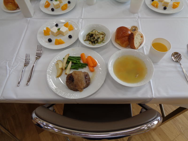ジュースは、オレンジジュースでした。テーブルマナーということで、最初は緊張していましたが、みんなおいしいと喜んで食べていました。