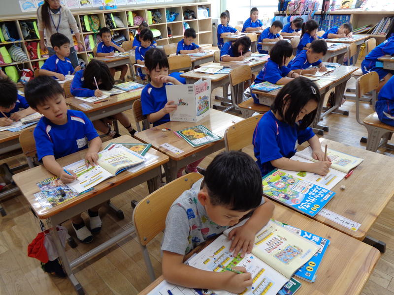 1年生の算数の学習の様子です。珠がなる数を聞いて答える問題やひき算の計算の学習に取り組んでいました。特に、あといくつで10になるかがすぐに答えることができることが、これからの計算の基礎になるので、しっかりと身に付けさせたいと思います。