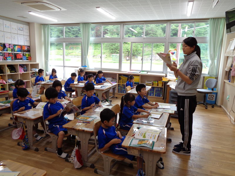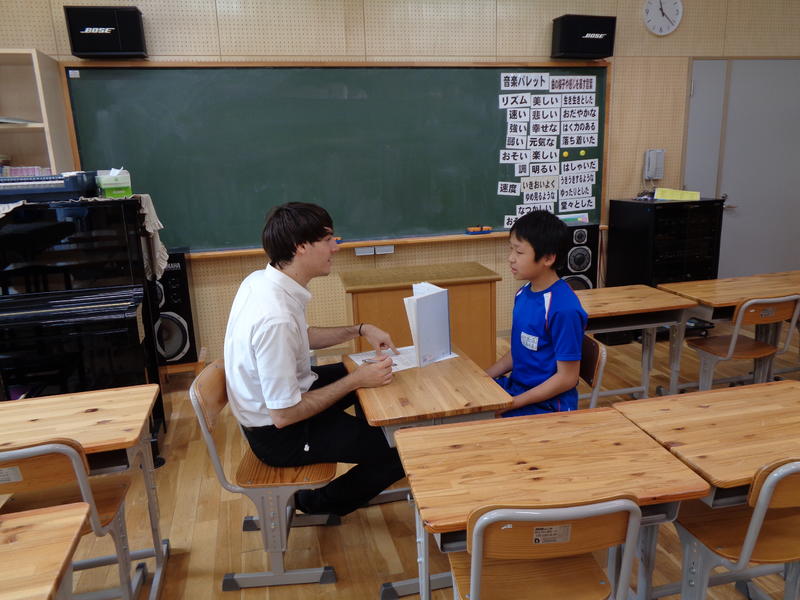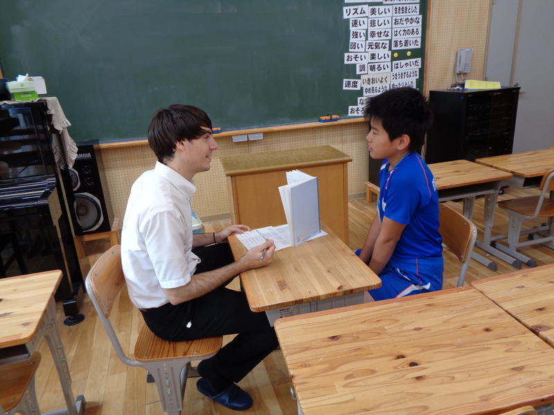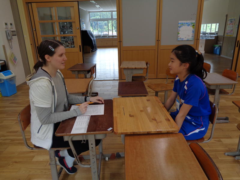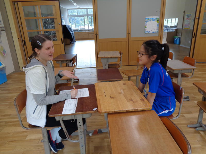 5年生一人一人の英語の理解力を把握するため、ALTの先生に5つくらいの質問を英語でしていただき、英語で答えてもらいました。マンツーマンで話をするため、子ども達もとても緊張したようです。結構しっかりと答えることができていました。確実に力がついています。