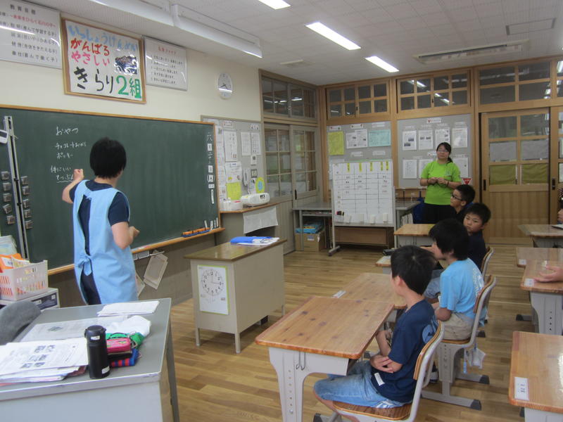きらり学級の子どもたちが、栄養教諭の先生と学習しました。今日は、おやつの取り方についての学習です。今日から、おやつの種類やおやつの量について考えて食べることができるといいですね。