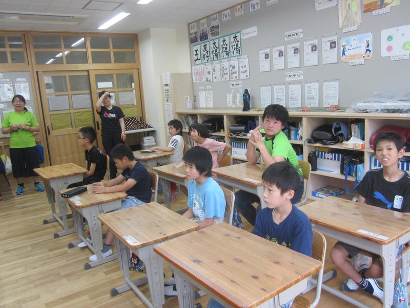 2019年6月28日 11時04分「私は誰でしょうクイズ」で誰かを当てる問題を通して、Ican~ .I like~ . などの言い方を学習していました。