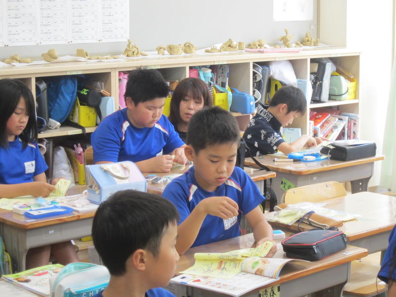 玉結びの練習です。初めての裁縫で、今日は玉結びについて学習しました。子どもたちにとっては結構難しかったようです。