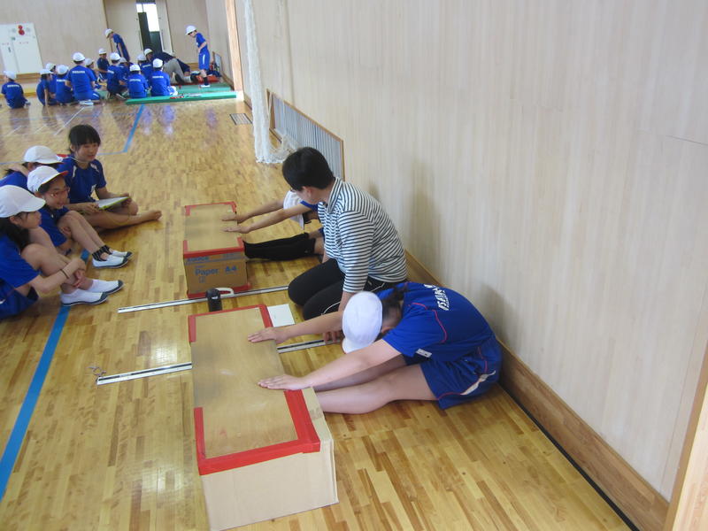 5,6年生が体力テストを行いました。みんな昨年度の記録を超えようと一生懸命頑張って取り組んでいました。