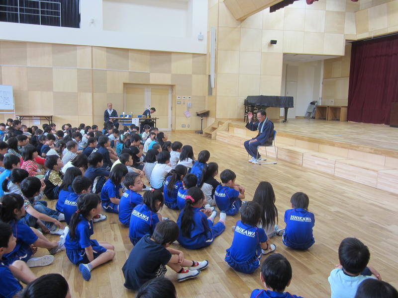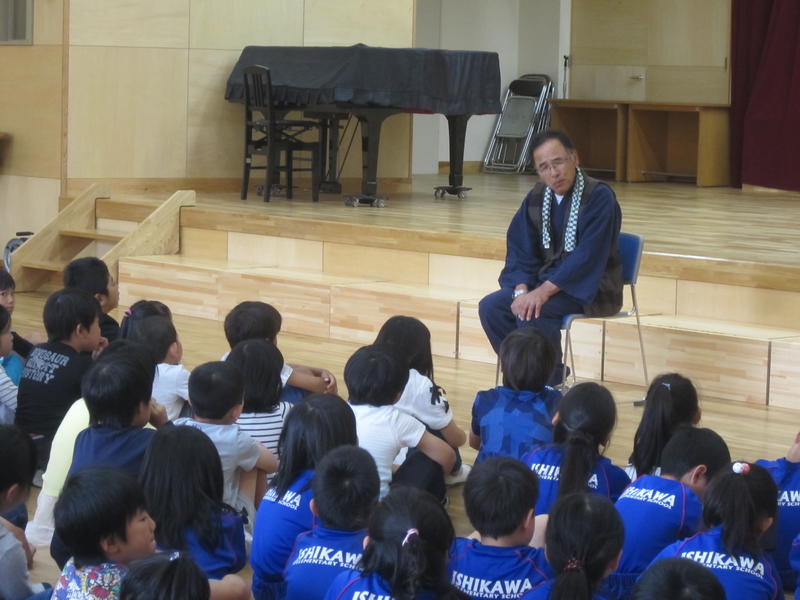 2019年6月16日 15時24分本日のオープンデーで、全学年で民話教室を実施しました。お話してくださった方々は、「親爺三人語りの会」の皆様です。毎年、読み聞かせ教室と民話教室を交代で行っています。民話には道徳的な内容が含まれ、子どもたちも真剣に話を聞いていました。