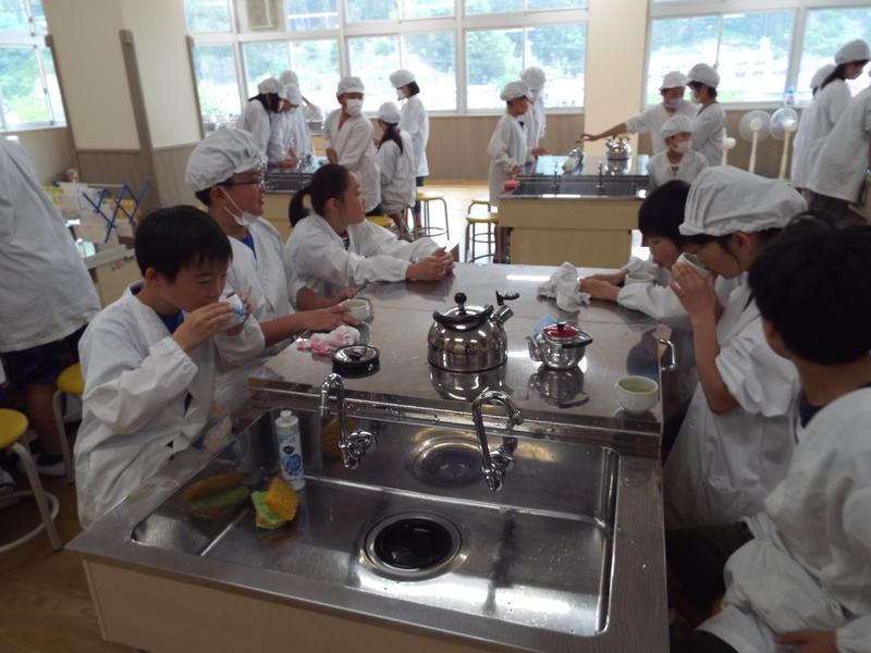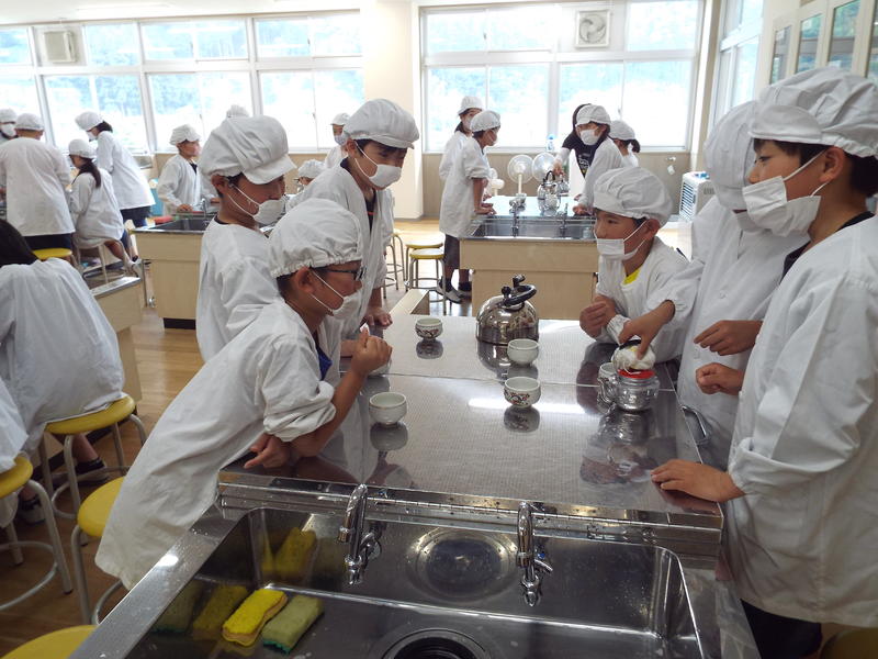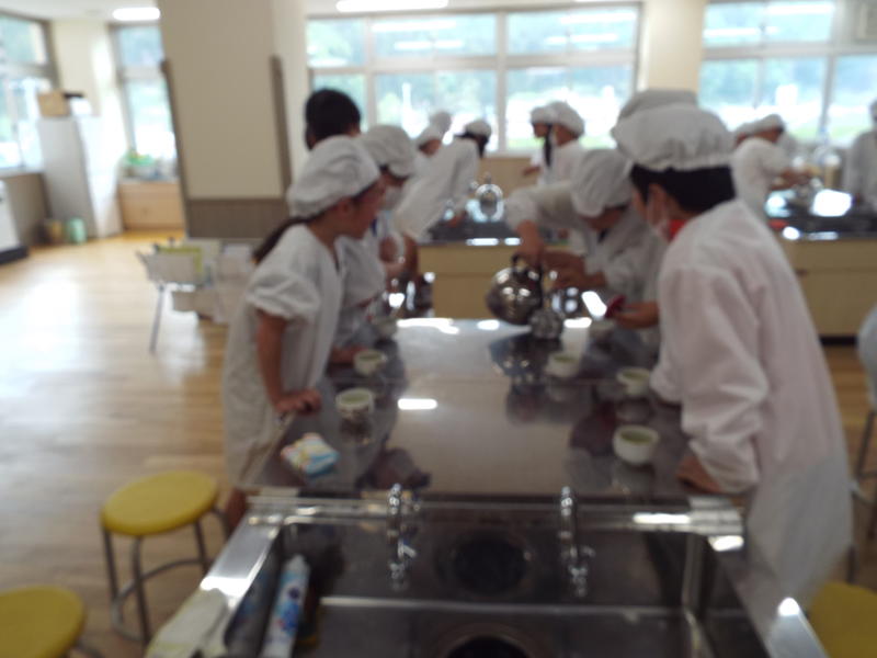 家庭科室でお茶を煎れる学習をしていました。家庭科室に入ると子ども達が、「校長先生、お茶をどうぞ」と煎れてくれました。子ども達が煎れてくれたお茶は、とってもおいしかったです。