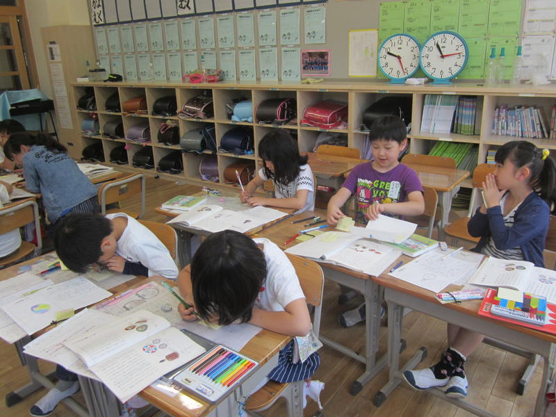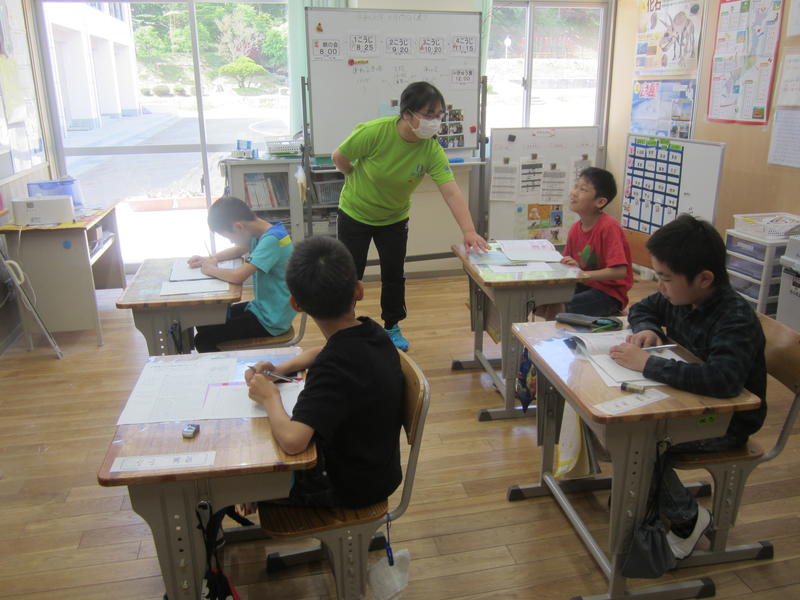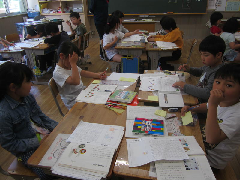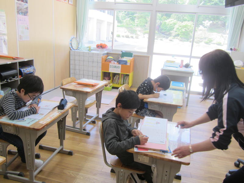 1校時目から集中して学習に取り組んでいます。漢字なども何も見ないですらすら書いていました。ノートなどを見せて、できるようになったことを報告してくれる児童もいました。みんなとてもよくがんばっています。少人数指導の成果だと思います。