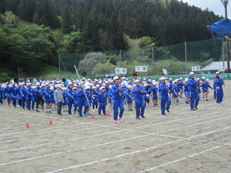 今日の3校時に、第1回目の運動会全体練習を行いました。今回は、入場行進の練習です。強風が吹く寒い日でしたが、子ども達は、真剣に練習に取り組んでいました。
