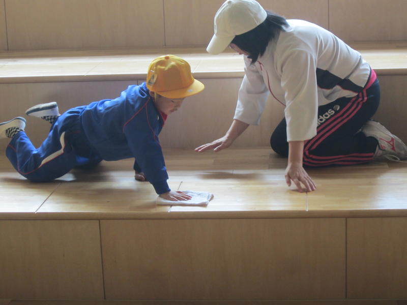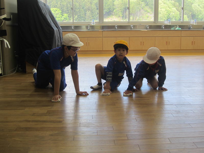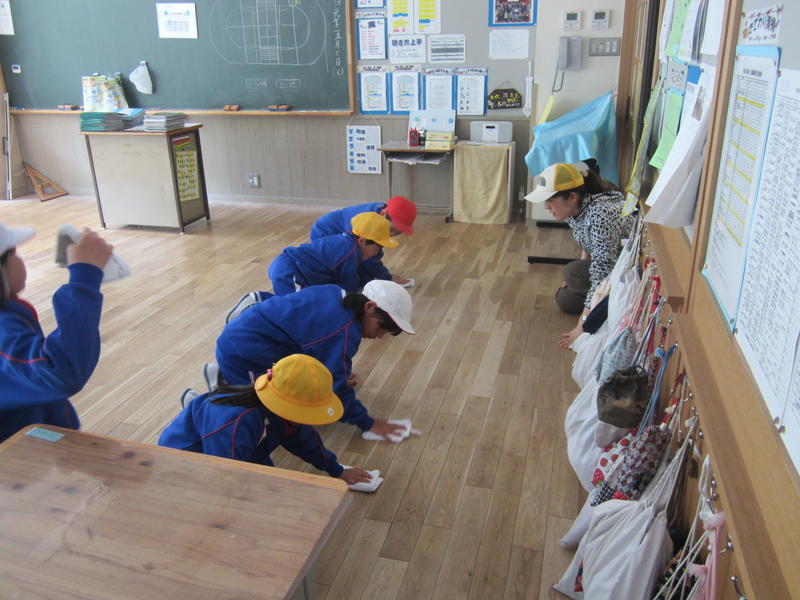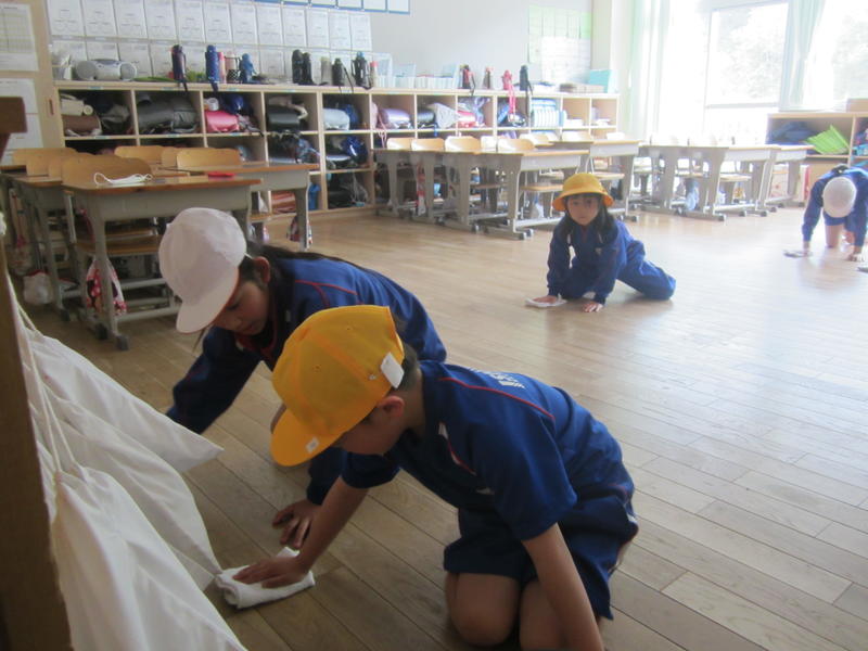 今日から1年生が清掃活動に参加しました。ぞうきんのかけ方や机の運び方など、上級生が優しく教えていました。とても、微笑ましかったです。