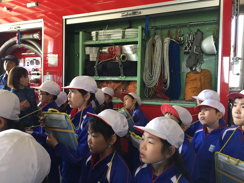 2019年5月8日 15時57分社会科の学習で消防署見学に行ってきました。消防署では、質問に答えていただいたり、消防自動車や仮眠室を見せていただいたり、1日の仕事について教えていただいたりしました。