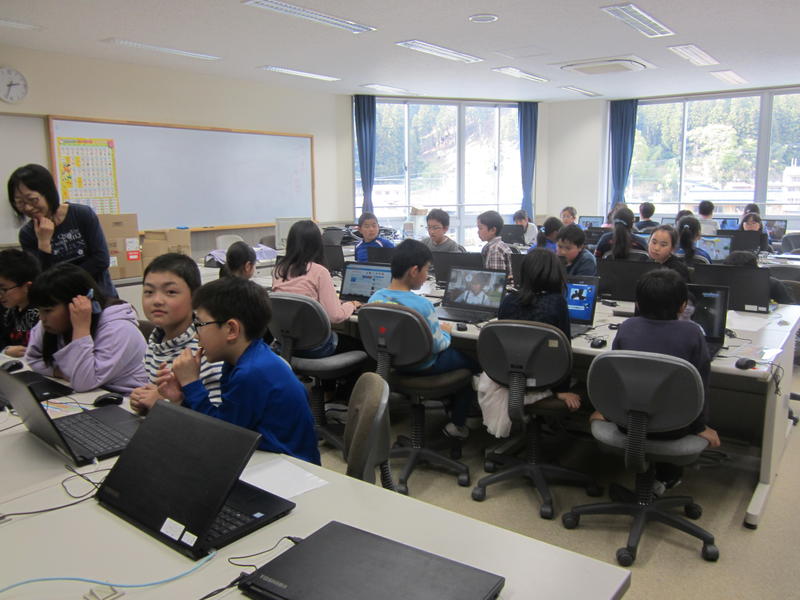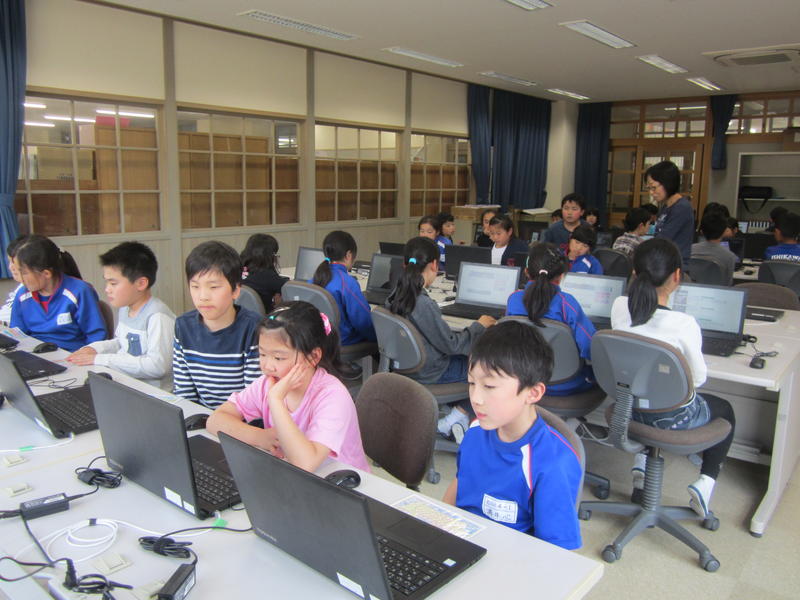 4年生がパソコン室で、スマートホンの危険性について、自分で調べながら学習していました。危険な状況をリアルに表現せいた動画もあり、子どもたちは、SNS等の怖さについて知ることができました。