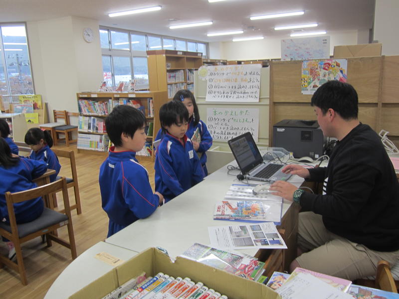 2年生が図書の借り方の学習をしていました。今年度からバーコードを使って本を借りることができるようになりました。子ども達には、是非、たくさんの本を読んでほしいと思います。