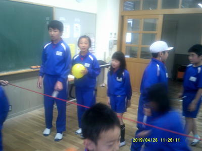 6年生を中心とした縦割り班ごとに、1年生を歓迎する活動です。あいにくの雨で、予定していた外での活動はできませんでしたが、それぞれの班が室内でできる遊びを楽しみながら1年生とふれあうことができました。1年生もとても楽しんでいました。