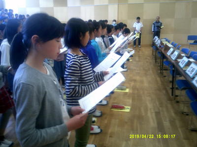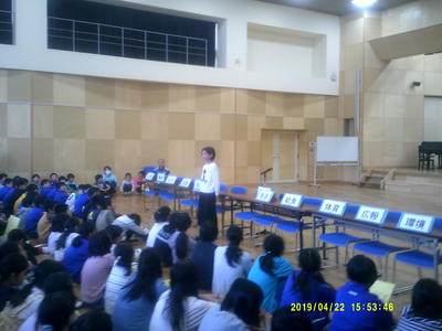 2019年4月22日 17時52分本日6校時に、青少年赤十字結団式がおこなわれました。校長先生から、健康・安全、奉仕活動、国際理解・国際親善についてのお話しがありました。奉仕の心を持って、一年間活動してほしいと思います。