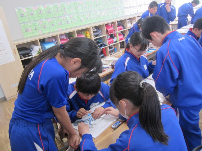 点対称の図形の描き方について学習していました。ちょっと複雑になると点対称の図形を描くのも難しくなります。友達同士で、学び会いながら図形を描いていました。