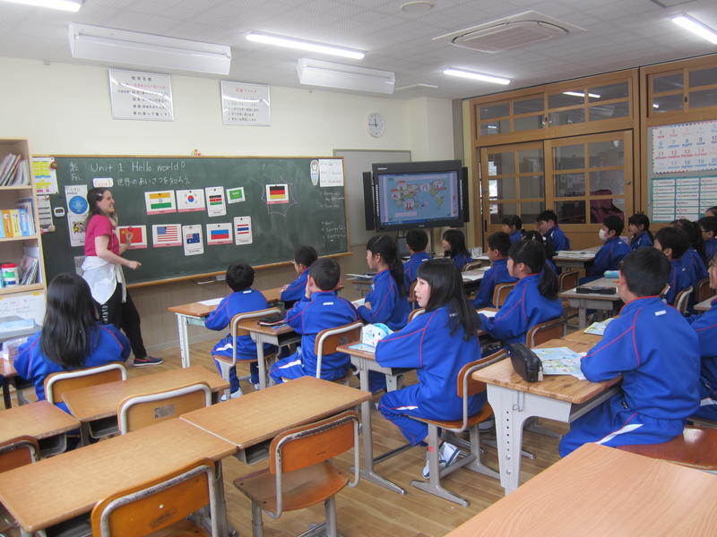 諸外国のあいさつについて学習しました。子ども達は、国旗を提示すると元気に各国のあいさつを言っていました。子ども達の習得の早さにびっくりします。