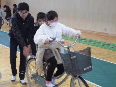 自転車部では、実技を披露してもらい、自転車乗車体験をしました。