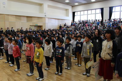 式では、代表児童が2学期に頑張ったことや3学期に頑張りたいことの発表を行いました。