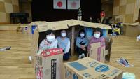 クリスタルホールをいっぱいに使って、段ボールを使った楽しい工作活動を行いました。