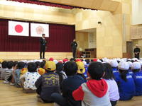 訓練後は、クリスタルホールで警察署の方からのご指導や、代表児童による実演などもありました。