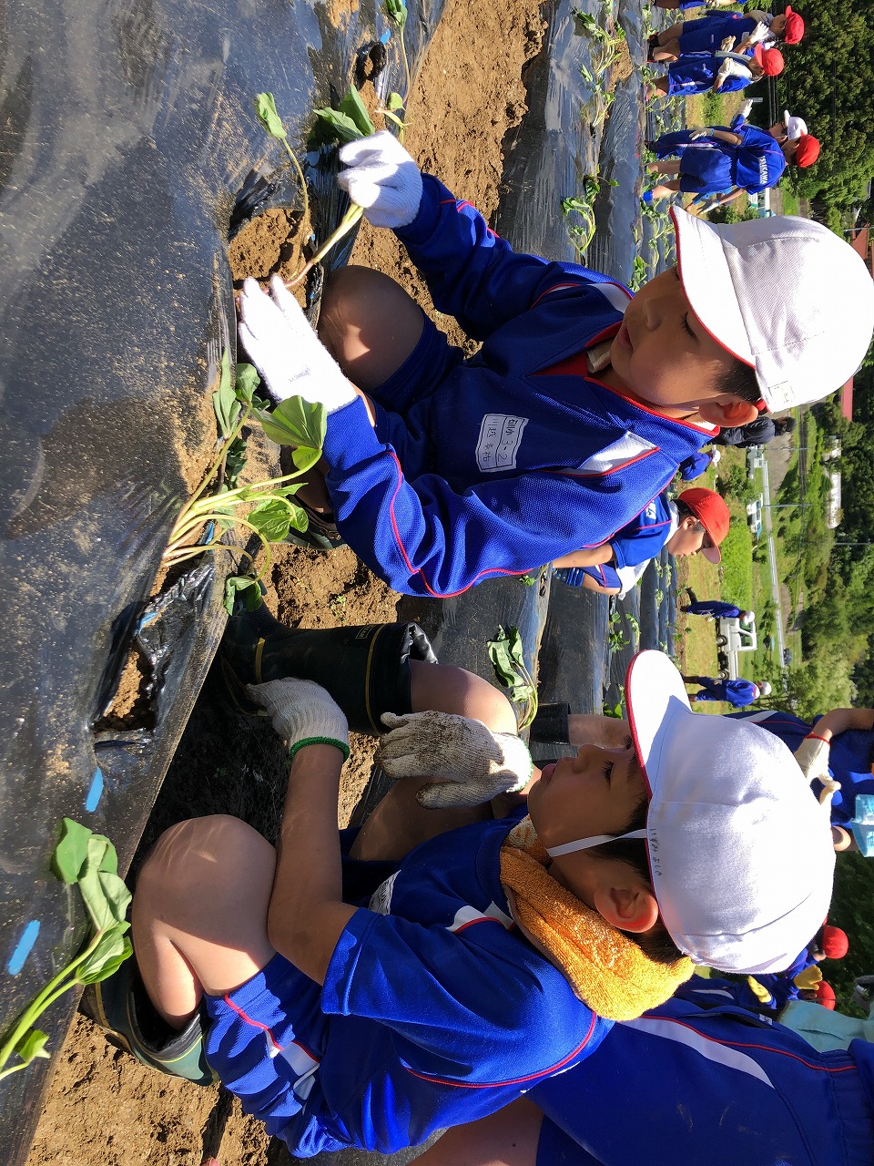 24日(木)、3年生が総合の学習でさつまいものなえ植えを行いました。