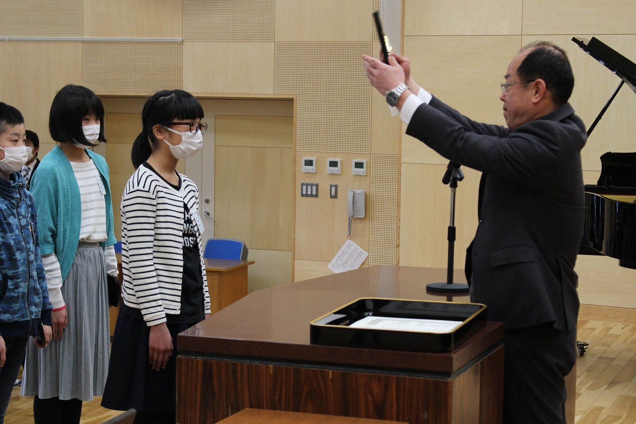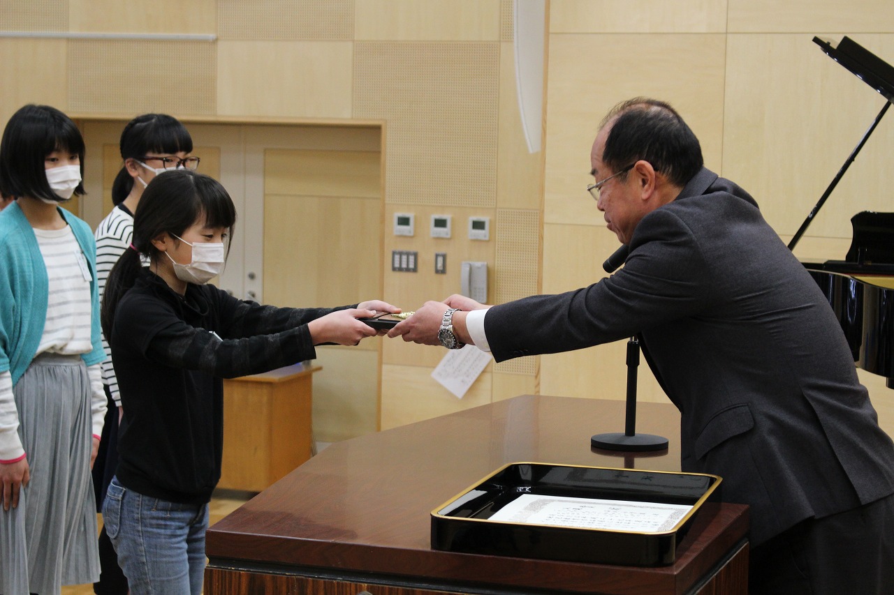 3月22日(木)、クリスタルホールで感謝状贈呈式と6ヶ年無欠席賞表彰式が行われました。
