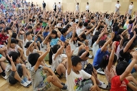 校長先生からは「1学期では命にかかわる事故やケガが無く過ごせたことがうれしかった,夏休みも同様に自分の命は自分で守れるよう,約束を守って生活してほしい」というお話がありました。また,生徒指導主事の矢吹先生からは夏休みを楽しくすごすために,交通事故や花火など火の取り扱い,海やプールでの水の事故に十分注意するようにお話がありました。