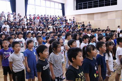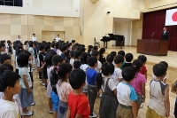 校長先生から,子ども達が元気よく登校し2学期を迎えられたことや,夏休み中の各課外活動で地区大会から全国大会まで,子ども達が目標を達成するために努力する姿が大変素晴らしく,その姿をみることができてとても嬉しかったというお話しがありました。