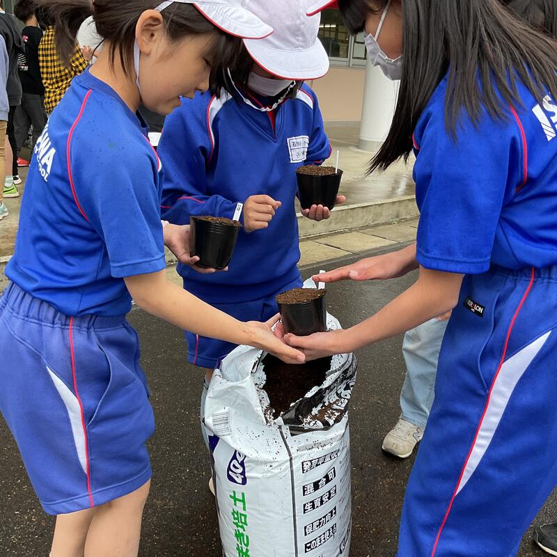 4月24日、ホウセンカのたねまきをしました。1,2年生の時にあさがおとミニトマトを育てた3年生。新しい教科「理科」の学習は、手慣れた手つきでのたねまきからのスタート!