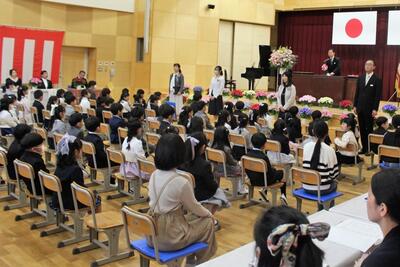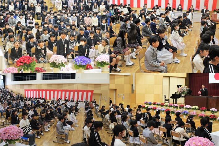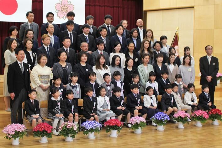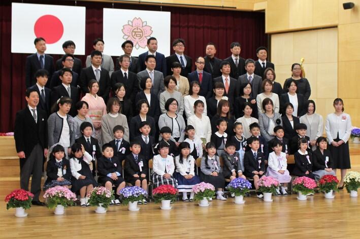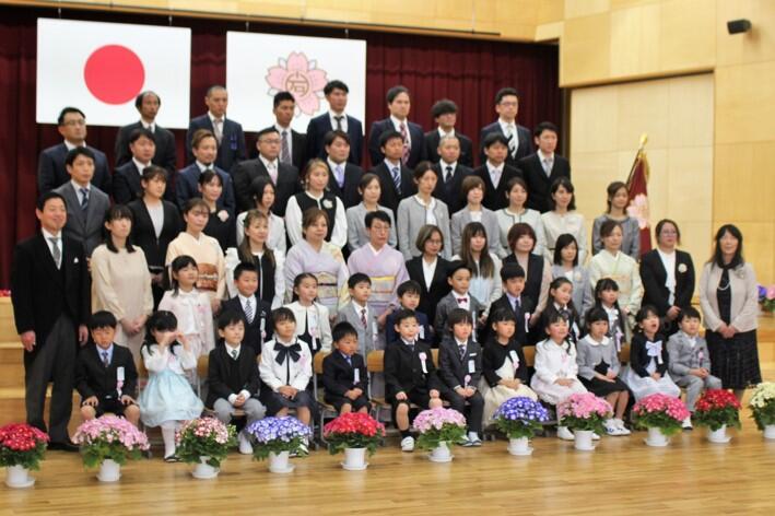 ピカピカのランドセル、きれいな衣装、きらきらを目を輝かせた新入生65名の入学式が行われました。