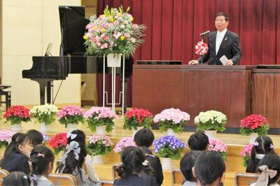 石川町長様より、元気に学校生活を送ってくださいというお祝いのお話がありました。