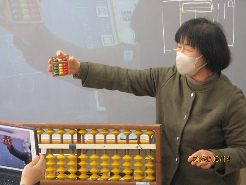 本日の授業、先生はナント支援員さん。昔取った杵柄、そろばんの仕組みや種類、もちろん使い方も丁寧に教えてくださいました。