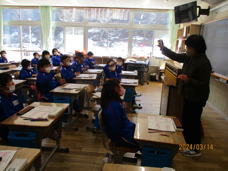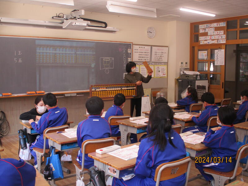 本日の3年生の算数は「そろばん」。最近はその良さが見直されているそろばん。