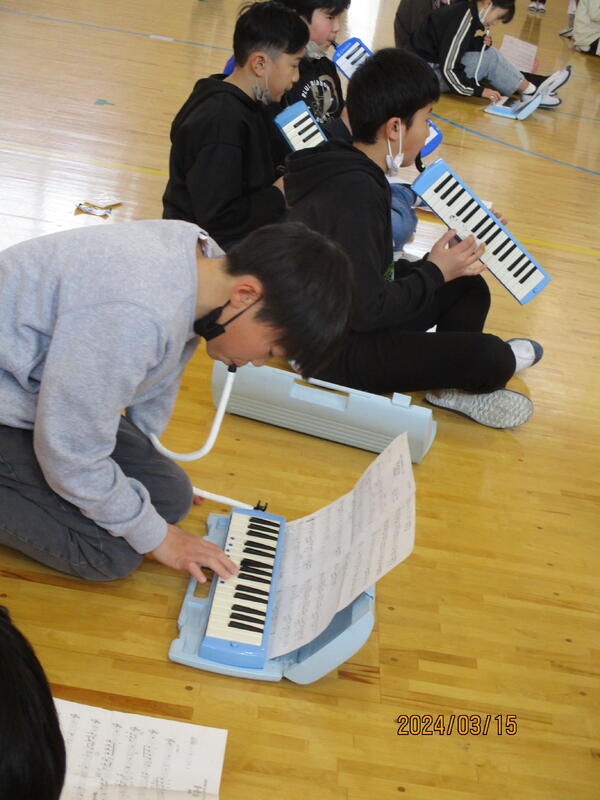 6年生からバトンを渡された5年生「新鼓笛隊」は今、新しい曲に挑戦中です。みなさんご存知、安室奈美恵の「ヒーロー」。ちなみに葛城ユキではありません。この曲、とってもかっこいいんです。挑戦する5年生生のモチベーションも高く、昼休みを割いての練習も、真剣そのもの。でも、たまには昼休みをも欲しいかな!?