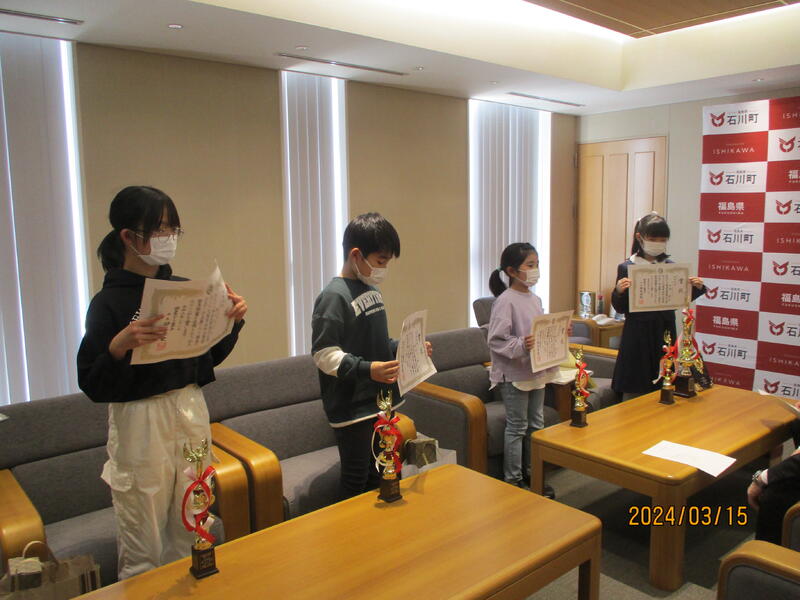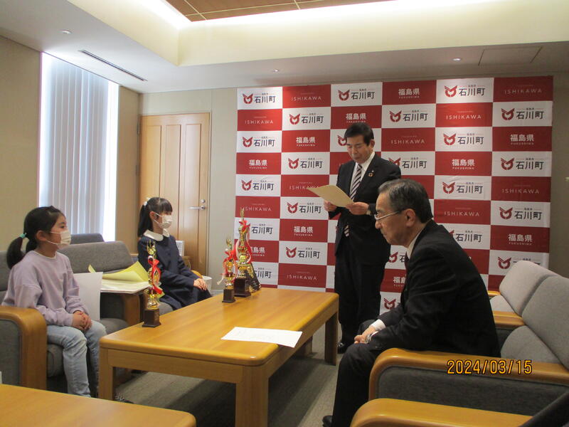 迎えてくださったのは、石川町町長様と教育委員長様。やや緊張気味でしたが、町長様からの質問にもしっかりと答えた4名の子どもたちです。