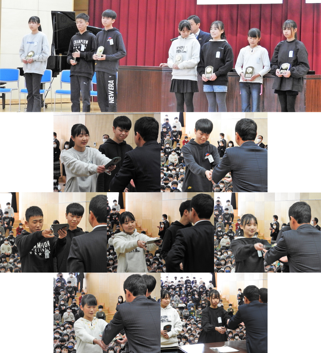 2024年3月21日 16時04分7名の児童が「6ヶ年無欠席賞」を表彰されました。