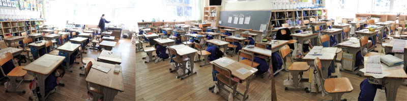 子どもたちは、予告なしの避難訓練にも真剣に取り組み、校長の話に真剣に耳を傾けていました。
