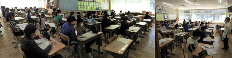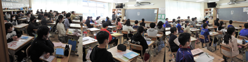避難訓練の後、校長から東日本大震災13年にあたって、震災の時の様子、被害の様子について話がありました。