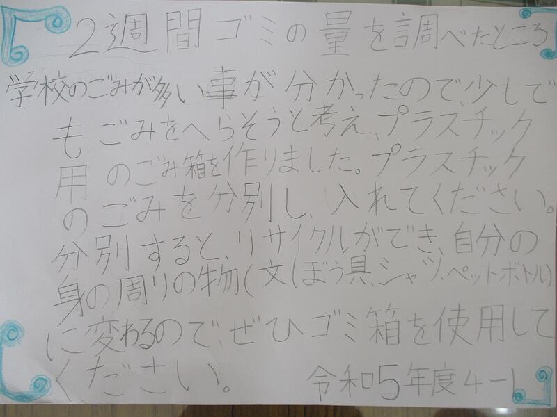 学習する中で、ゴミの分別が大切なことに気づいた4年生、早速行動に移します。