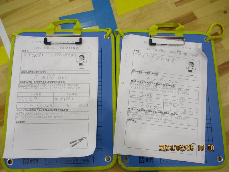 2年生なわとび記録会、今年は2回目ですから、持久跳びも昨年度の倍の時間(2分間)となります。さて合格者は!?