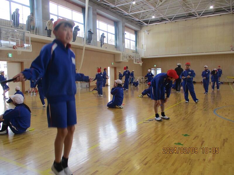 金曜日(9日)は5年生によるなわとび記録会。さすがに高学年はひと味違います。持久跳びは5分間、選択跳びも二回旋一跳躍(二重跳び)系が続出。大縄跳びも、あるクラスは3分間300回が目標とか!?、ギャラリーの保護者さんもついつい力が入ります。さて、結果は?