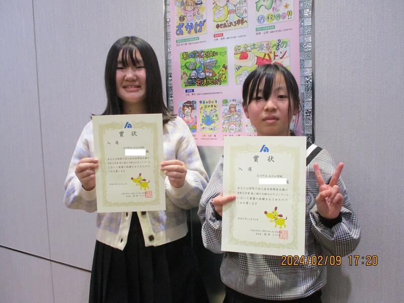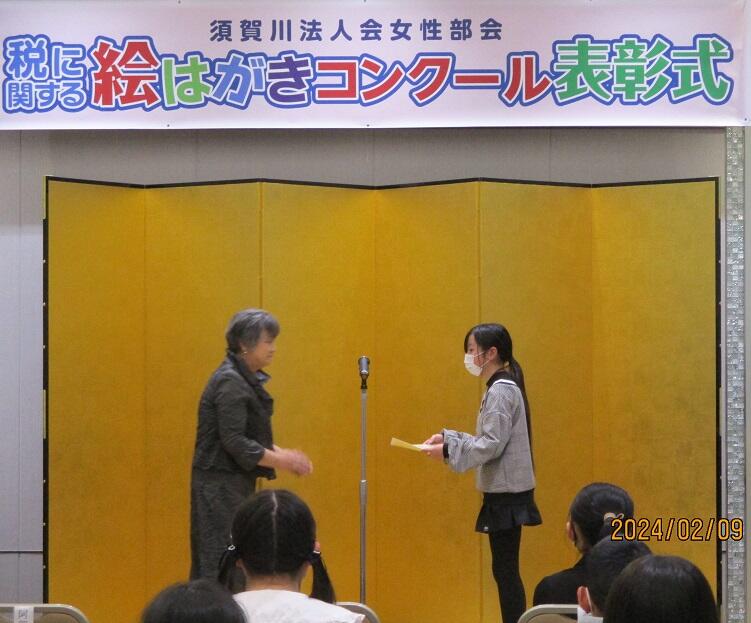 9日、須賀川法人会主催の「税に関する絵はがきコンクール」の表彰がありました。石小からは、6年生2名が「入選」となりました。
